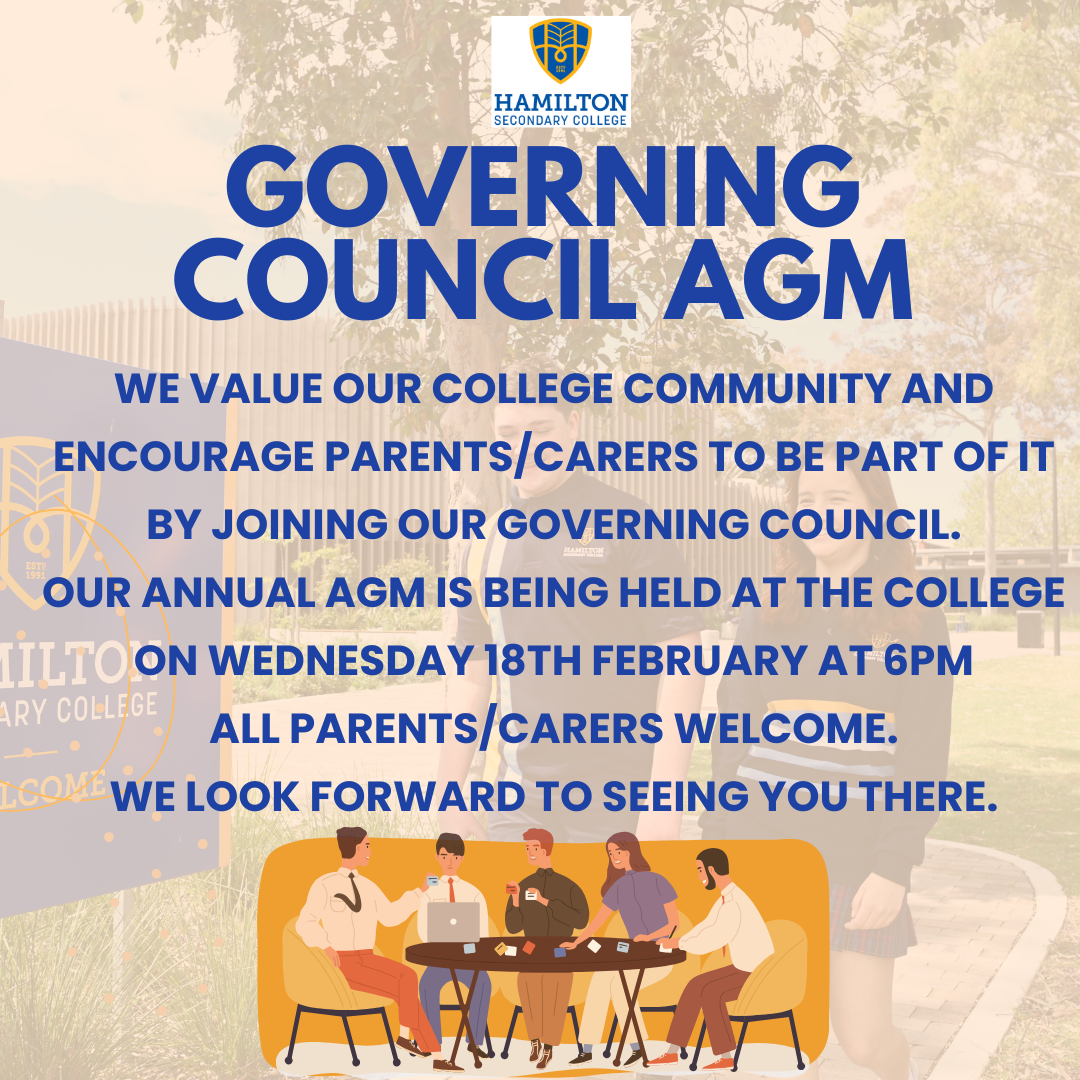 Latest News Feb 12, 2026 Governing Council Annual General Meeting Hamilton Secondary College AGM – Wednesday 18th February at 6pm Send Share Share