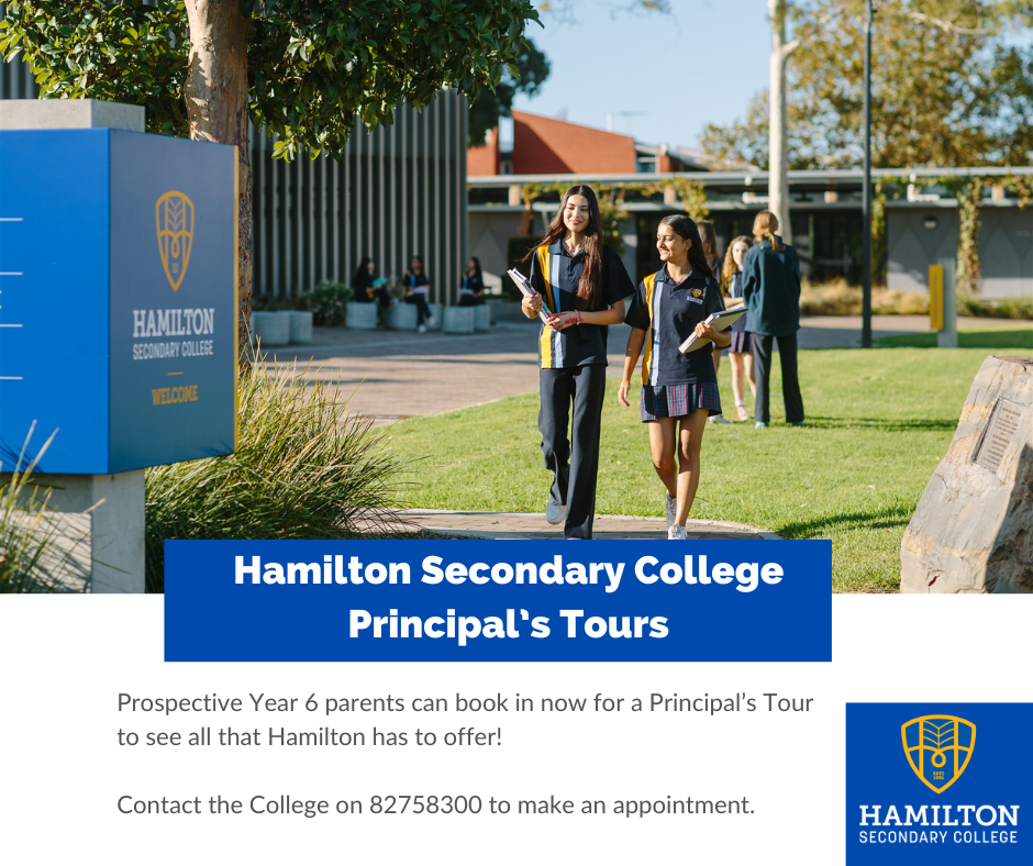 Principal Tours are available for prospective year 7 parents on Thursday mornings by appointment.